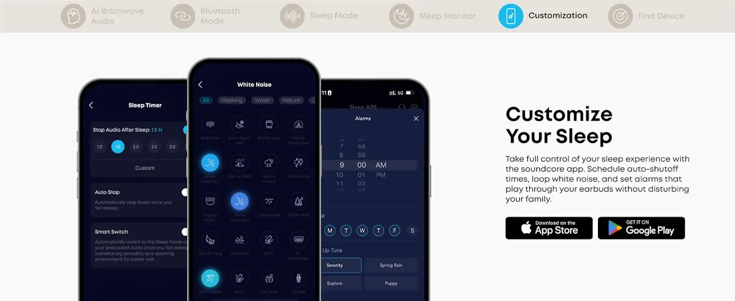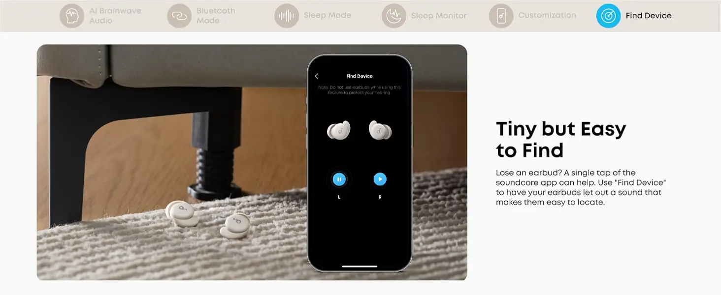 • Drift Off Faster with AI Brainwave Audio: The soundcore app's binaural beats induce brainwaves that promote relaxation, helping you fall asleep quicker. Audio is continuous and loop-free to keep your rest undisturbed.