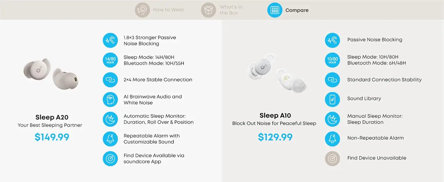 • A Full Night's Peaceful Sleep: Our exclusive 4-point noise masking system and twin-seal ear tips with 3× stronger passive noise blocking mask snoring, pet sounds, and ambient noise. Note: Sleep A20 does not feature active noise cancelling.