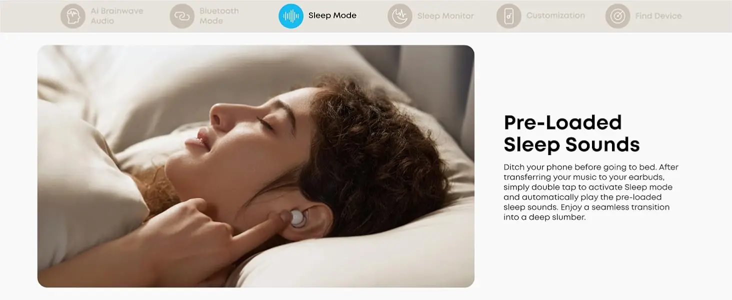 • Sleep Analytics for Better Sleep: Built with MEMS sensors, these earbuds track your sleep status and provide detailed visual reports in the app, helping you understand and improve your sleep quality.