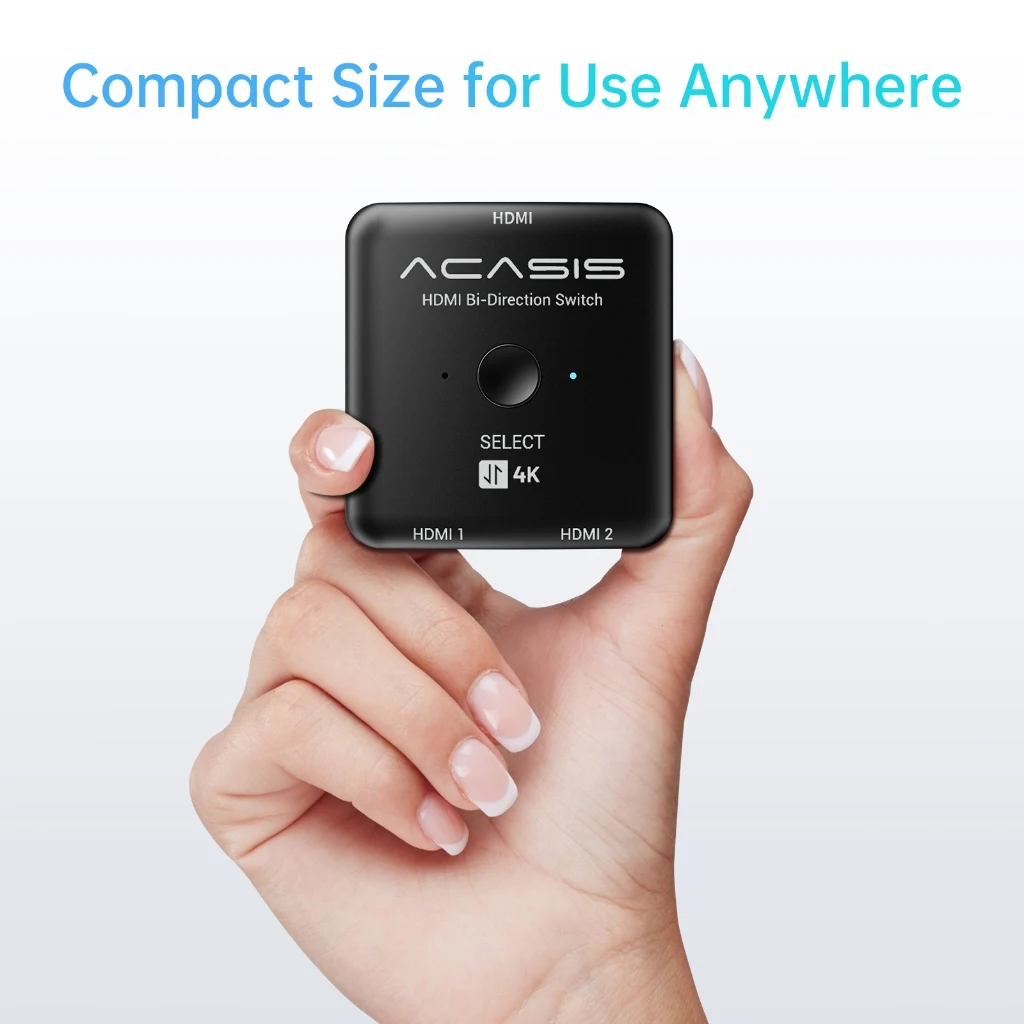 ACASIS HDMI Switch Splitter 4K@60hz Bidirectional HDMI 2.0 Switcher 2 in 1 Out HDMI Splitter 1 in 1 Out Support 4K 3D HDR for Pc