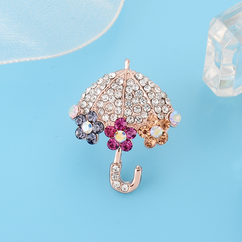 Fashionable Rhinestone Flower Umbrella Brooch Pin