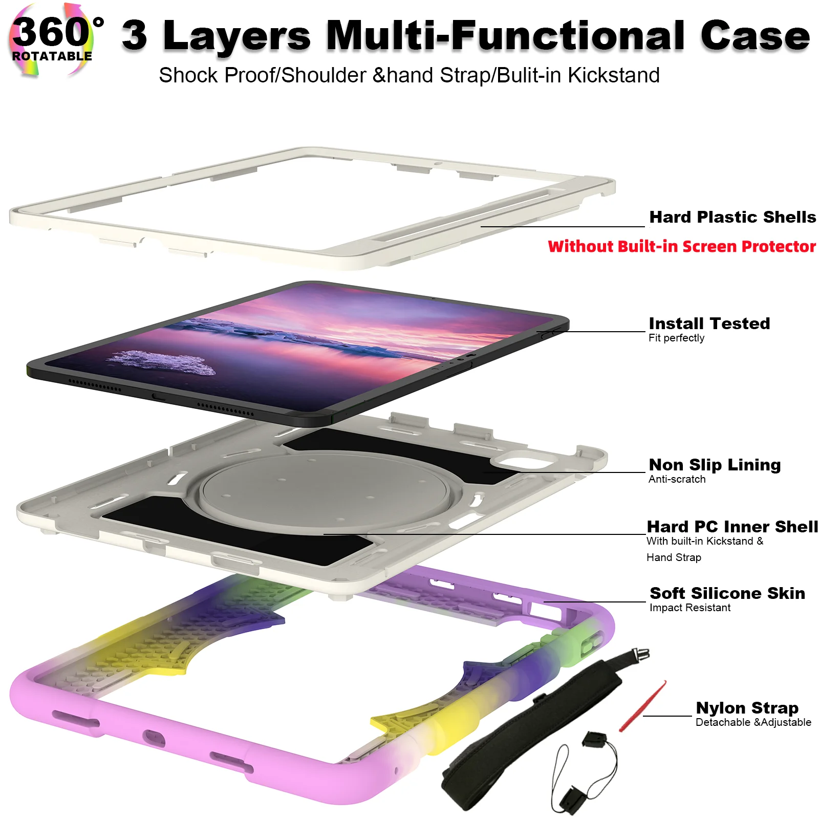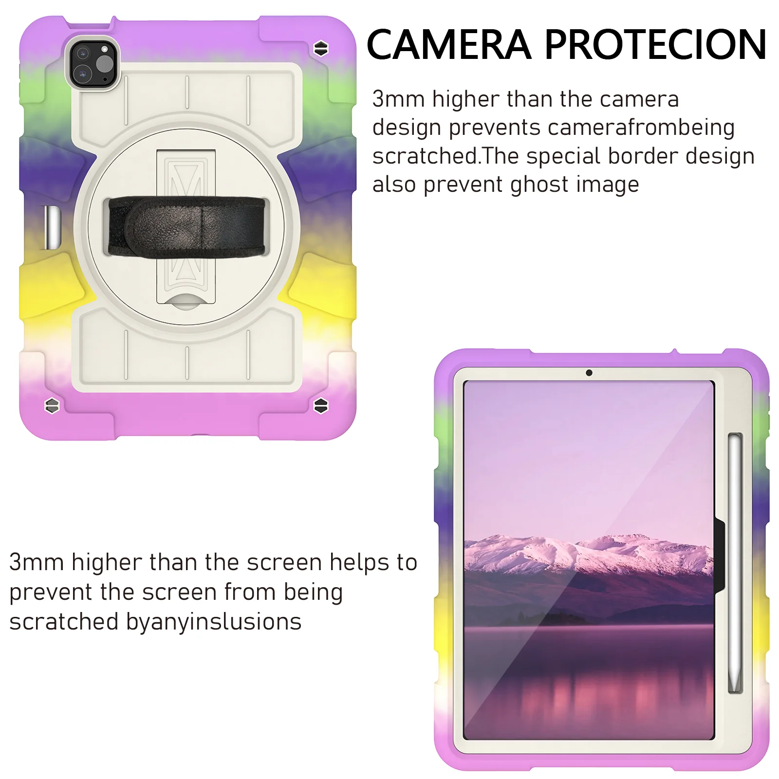 Heavy Duty Case For iPad Pro 11 M4 2024 Model A2836 A2837 A3006 360 Rotation Armor Stand Cover With Shoulder Strap Shockproof
