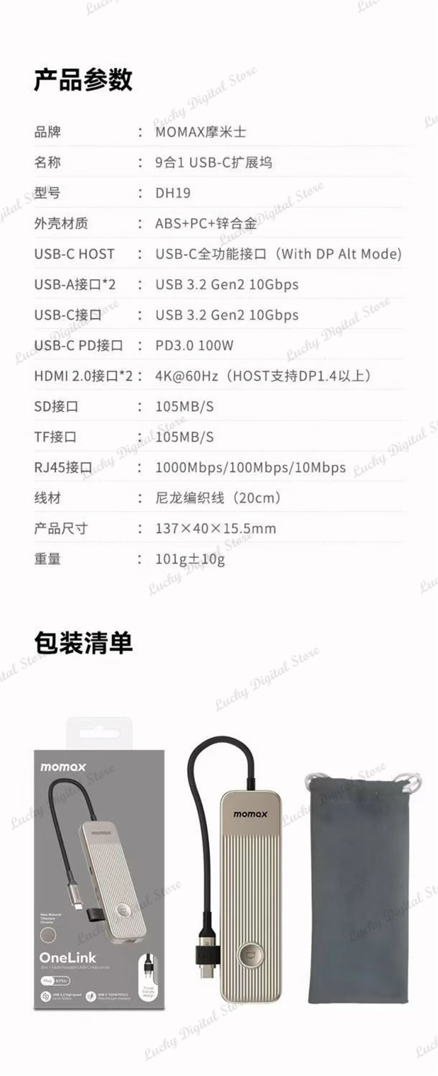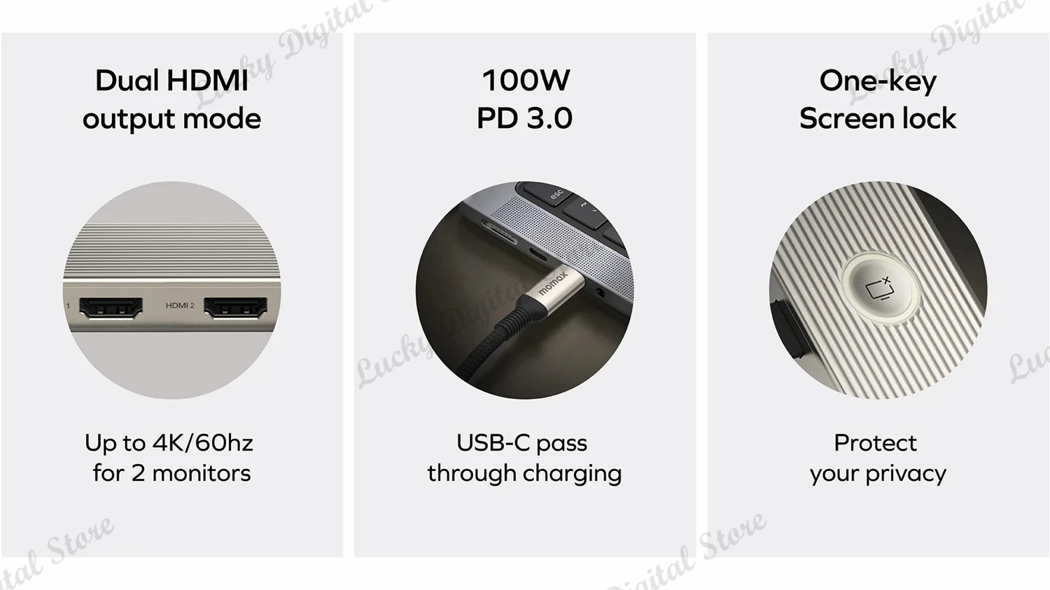 Momax 9 in 1 USB-C Hub Fast 10Gbps USB 3.2 Display Hub 100W Max PD-in for MacBook Pro iPad iPhone 15 Surface Pro Dell and More
