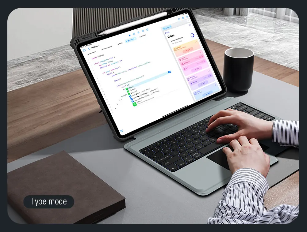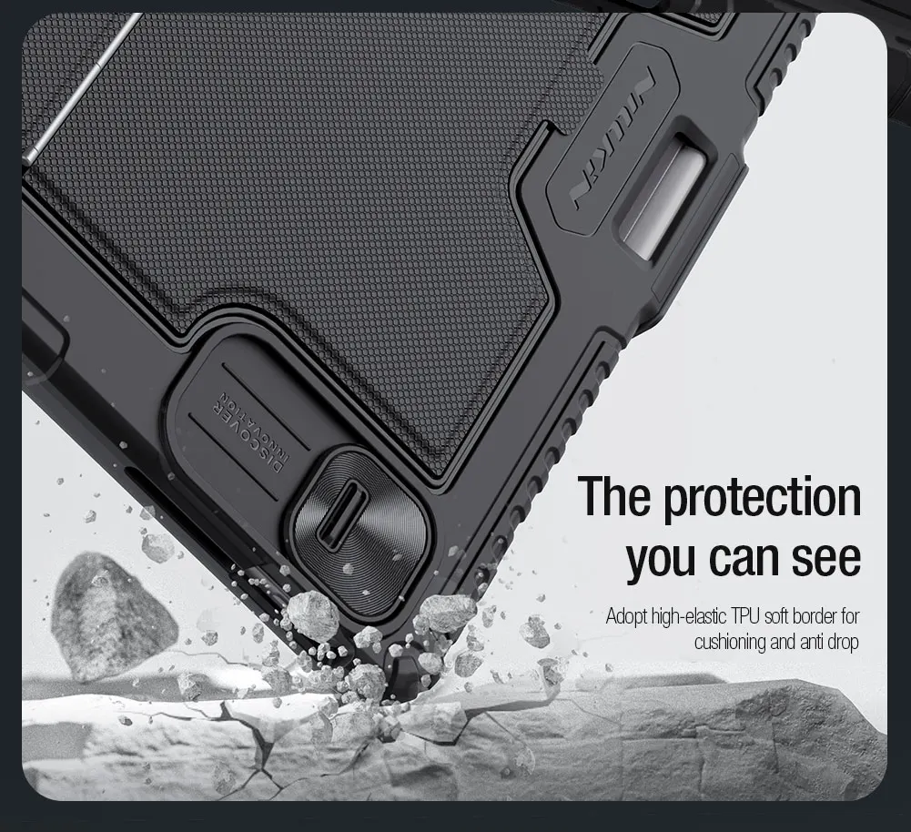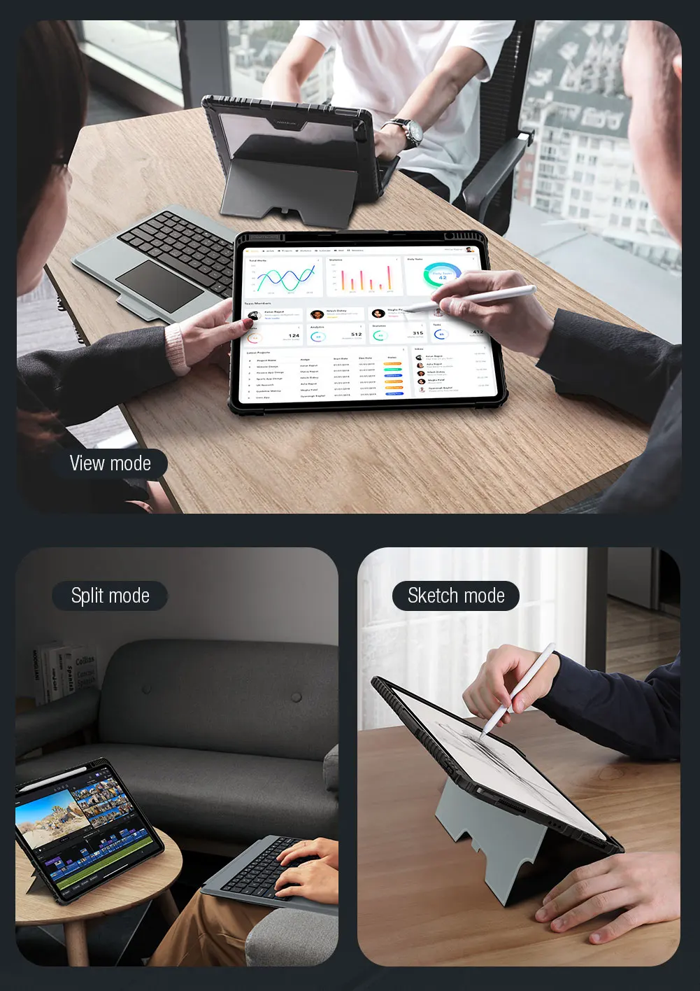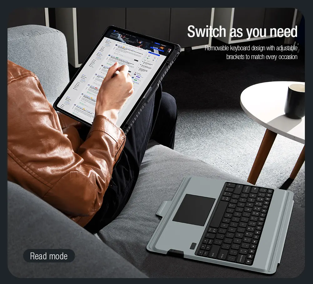Bumper Combo Keyboard Case is a multi-function keyboard case , featuring an adjustable stand, a removable keyboard and a trackpad that make it convenient to type, view, read and sketch. Also let you enjoy a flexible operation experience. The adopted military-grade anti-fall case wraps tightly around edges, offering all around protection. Patented sliding camera cover design efficiently protect camera from abrasion and scratches. Concise and delicate PU fabric blends with the aesthetics of Samsung Pad, a perfect integration of art and technology.