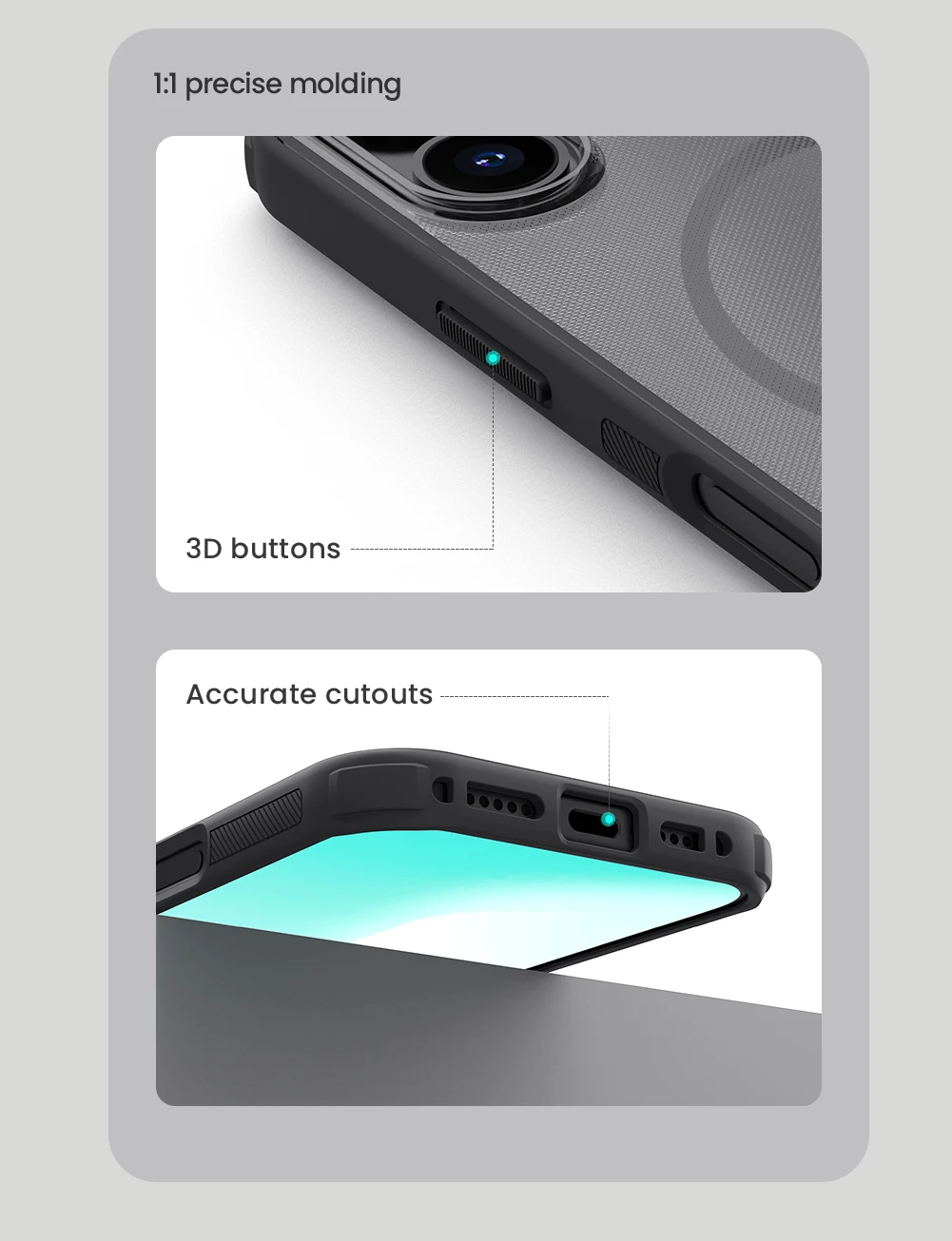 Super Frosted Shield Pro adopts injection molding technology. Use the dual materials of PC and TPU, which upgrade the protection. Enhance the fall resistance with TPU soft borders and bumpers on four corners. PC rigidity is good enough not to transfer and break off easily. Processed by the latest dustless matte UV painting technology, with comfortable sense of touch and elegant appearance. The surface uses salient point design, wear-resistant, anti-skidding, dust-proof, anti-fingerprint and easy to clean. Open mold according to real mobile phone with precise function holes.