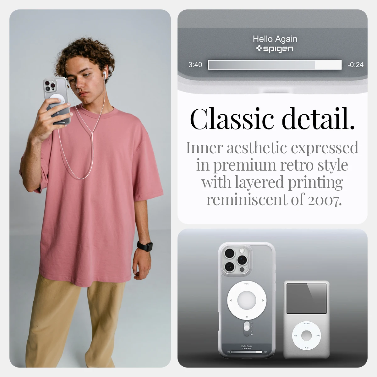 Rewind time. The Ultra Hybrid Classic MagFit transforms your iPhone 16 into an iPod Classic. Its nostalgic design keeps your iPhone looking like your favorite portable MP3 player and protects it from daily drops and scratches.