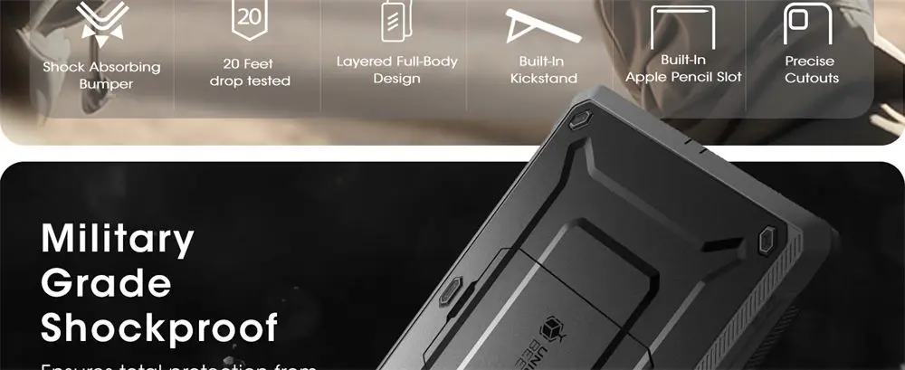Dual-layer hybrid pc shield backplane with shock-absorbing tpu bumber exceeds military quality standards(drop tested at a 48-inch height, 26 times). 5mm higher than the camera precise cutouts and port covers keep out dust & create full body 360° protection.