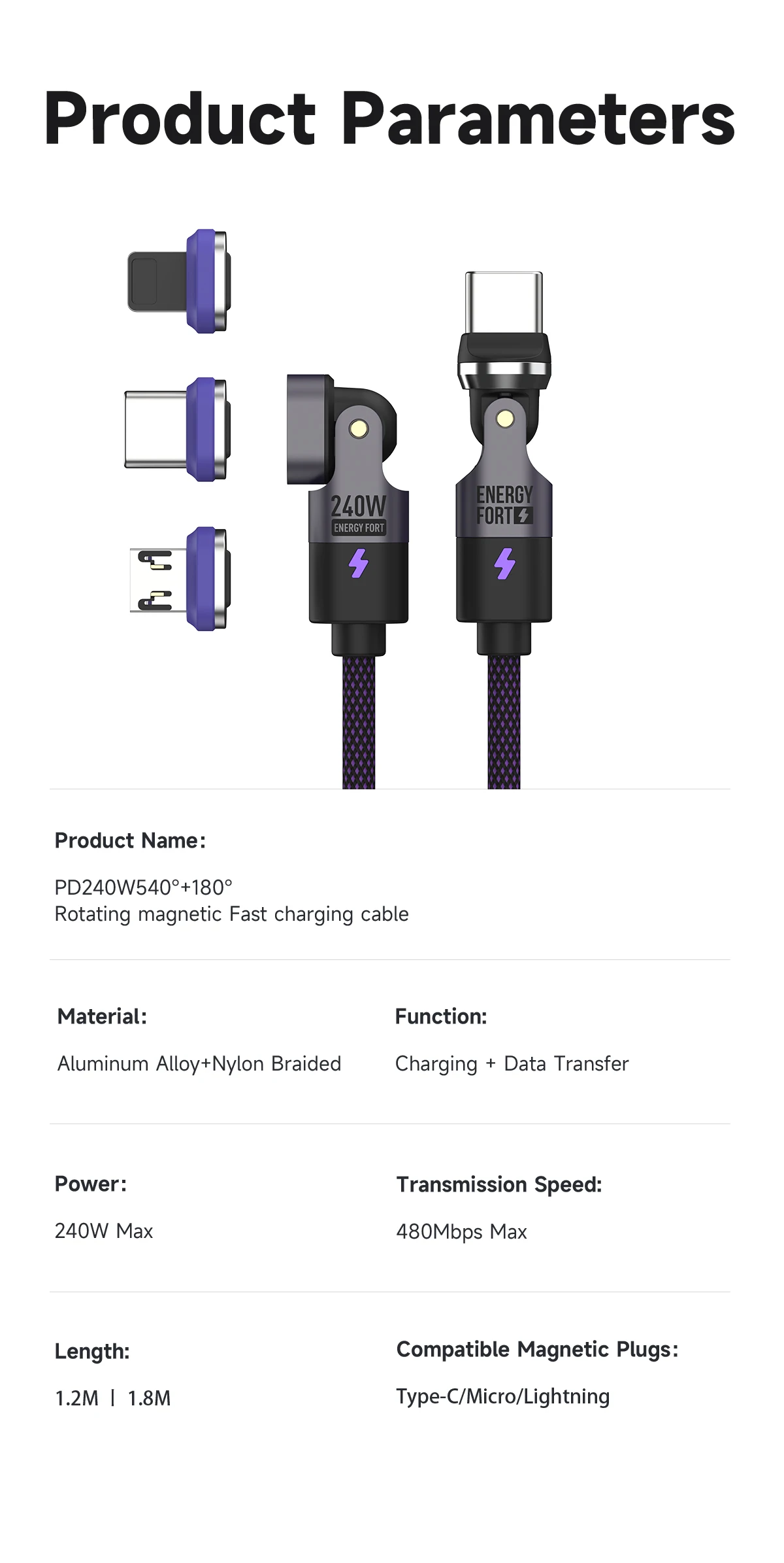 FeatureDetailsBrandUGREENModel240W PD 3.1 Fast Charging Cable 540° RotationPower Output240W (48V/5A)Data Speed480 MbpsConnectorUSB-C ↔ USB-C (Magnetic)Rotation540° (360° + 180°)MaterialNylon Braided + Aluminum AlloyChipE-Marker Smart ChipLength Options1 m / 2 mCompatibilitymacOS, Windows, Android, Chrome OSWarranty24-Month UGREEN Quality Guarantee