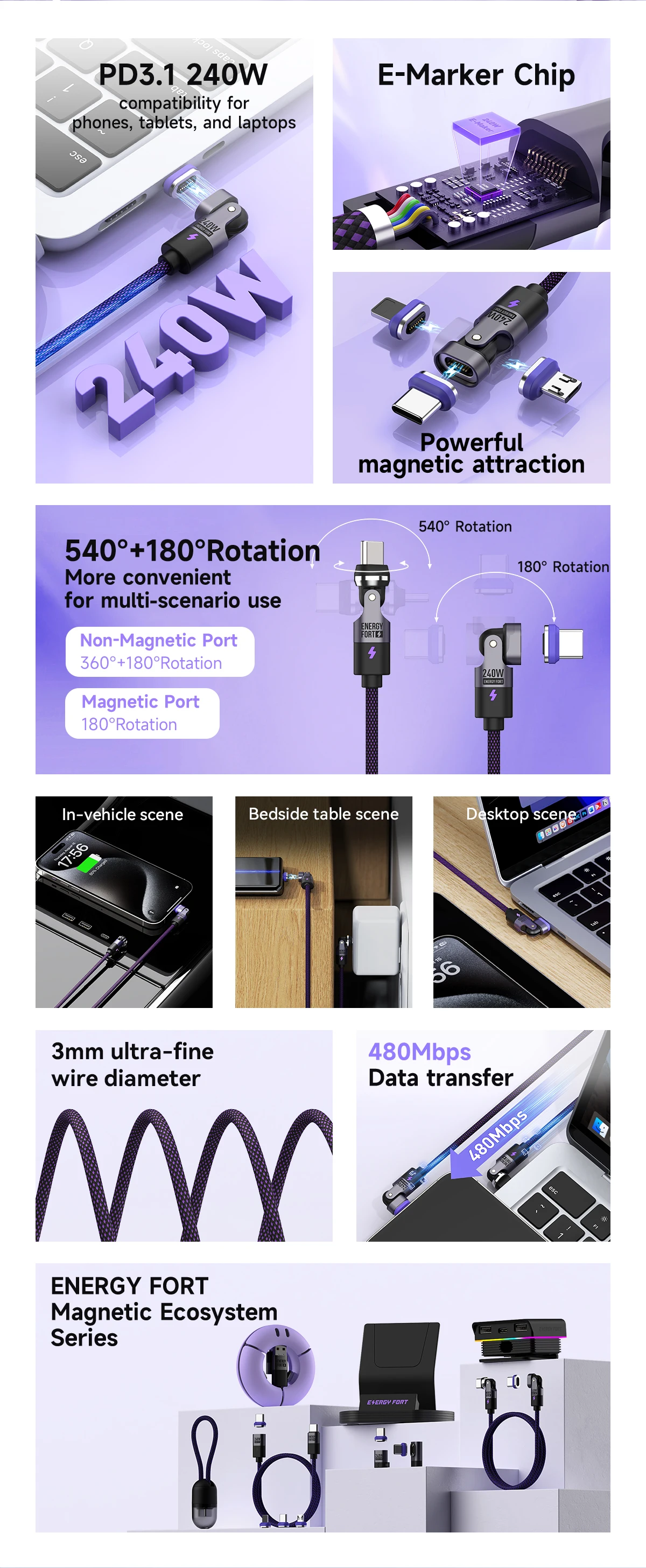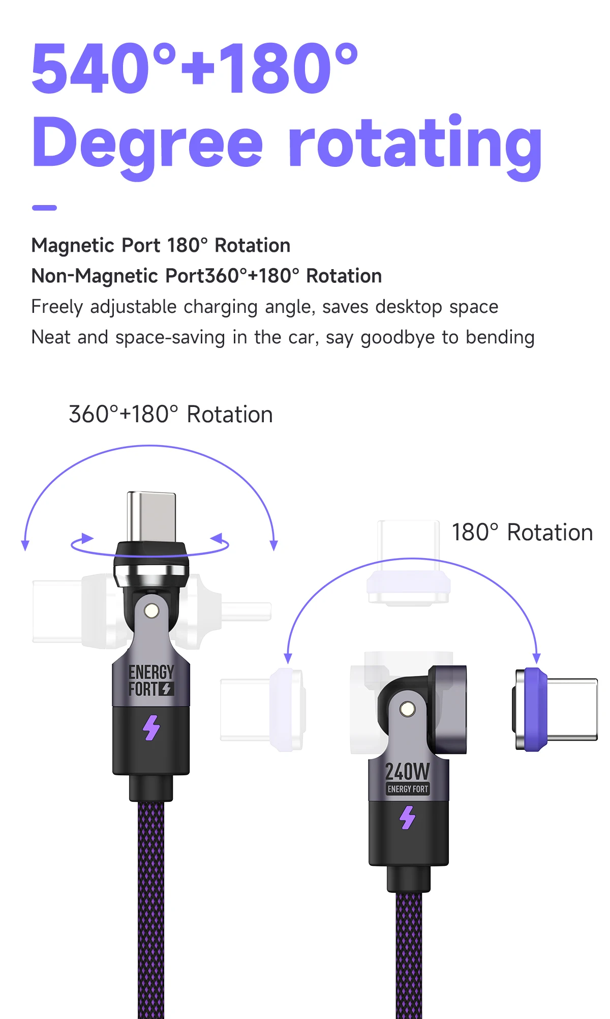 The UGREEN 240 W PD 3.1 Super-Fast Charging – 540° Rotating Magnetic delivers next-generation speed, power, and flexibility. With Power Delivery 3.1 support up to 240W (48V/5A) and a 540° rotating magnetic head, it efficiently powers laptops, tablets, and phones while keeping your connections safe and stable.
