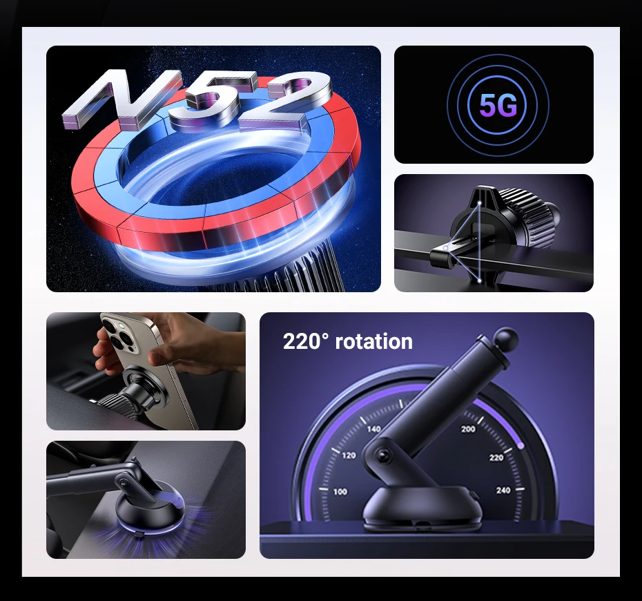 Equipped with six high-grade N52 neodymium magnets, the UGREEN Magnetic Car Phone Holder delivers an ultra-secure grip that holds your device firmly — no slipping, no shaking, no falling.