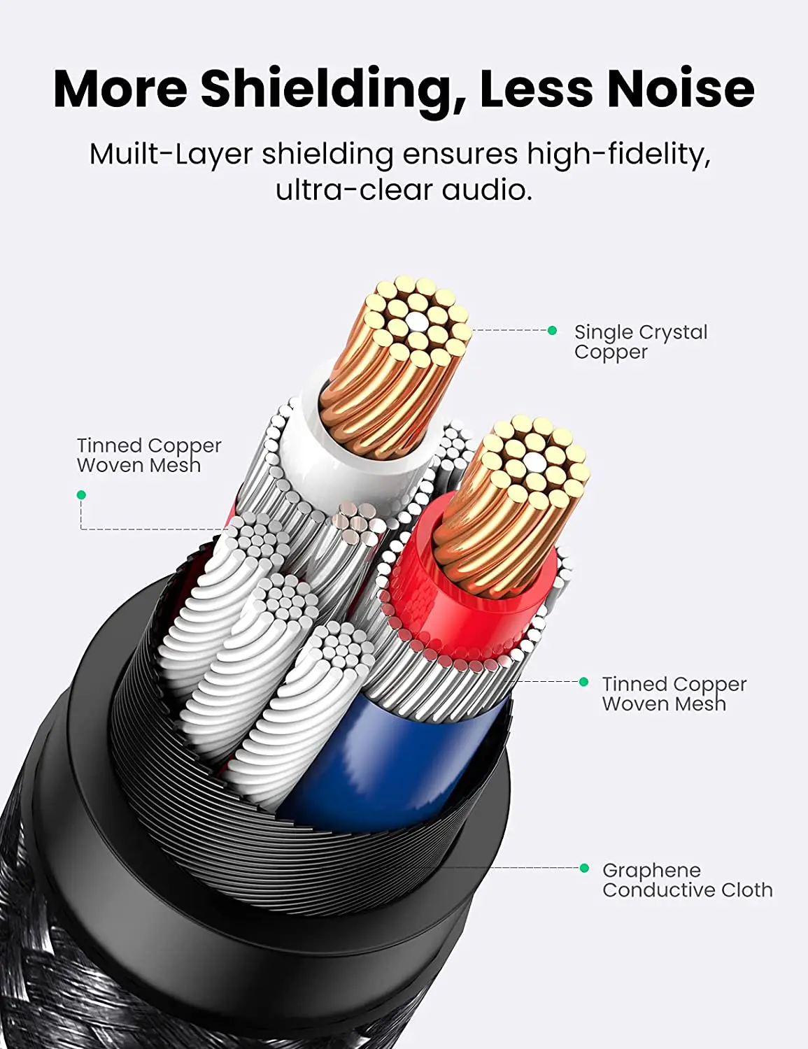* Single Crystal Copper: Equipped with single crystal copper, UGREEN digital audio cord has better conductivity than conventional copper, which effectively improves the resolution of each frequency band and allows more sound details to be displayed