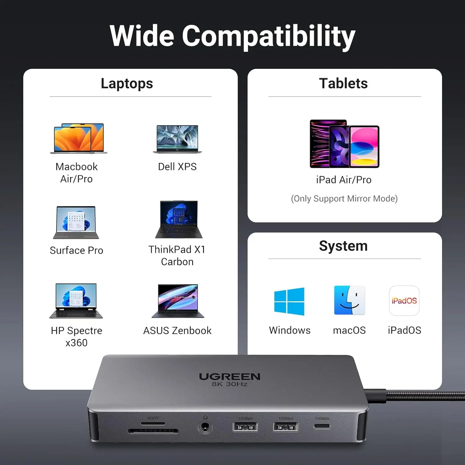 UGREEN Revodok Pro 211 Laptop Docking Station 11 in 1 USB C Dock Dual HD-MI 10Gbps Data Port 100W PD Gigabit Ethernet